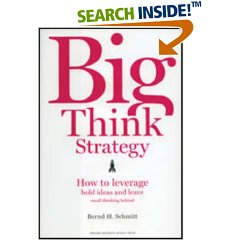 Pada mulanya, saya melihat bahwa buku ini adalah bagaimana berpikir lateral untuk mencari ide-ide kreatif, seperti pada buku “Lateral Marketing”. Namun, ternyata ini lebih dari itu. Di sini Schmitt menguraikan juga bagaimana ide-ide cemerlang (yang disebutnya sebagai “Big Think”) tersebut dapat direalisasikan sebagai strategi, dan bagaimana implementasinya. Tahap pertamanya adalah mencari ide (sourcing ideas), kemudian mengevaluasinya. Langkah selanjutnya adalah membuat ide tersebut menjadi strategi dan kemudian mengeksekusinya. Seperti pada buku strategi lainnya, buku ini juga menekankan pentingnya eksekusi dan kepemimpinan dalam proses implementasi strategi. Yang menarik dari buku ini juga dijelaskan bagaimana agar strategi yang sudah dieksekusi tersebut dapat sustainable.