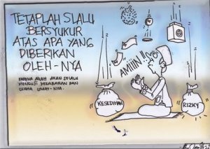 Jawabannya cuman satu: SYUKUR. Syukurilah apa yang kita punya di sini sekarang juga. Ubah cara pandang kita mengenai apa yang ada di sekeliling kita dan apa yang kita rasakan menjadi sesuatu yang positif. Ubah keluhan “aduh, gua banyak banget nih kerjaan”, menjadi ucapan syukur: “Alhamdulillah, saya masih punya kerjaan, sementara di luar sana masih banyak orang yang susah mencari kerja”. Yah, memang bersyukur memang bukan pekerjaan mudah. Tapi percayalah, salah satu kunci kaya adalah bersyukur. Allah akan menambah nikmat umatnya jika bersyukur. Selamat bersyukur!