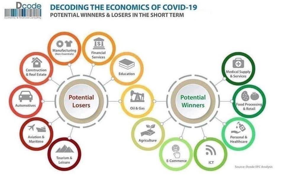 Akibat virus ini, manusia akhirnya kembali ke hal-hal yang basic, yaitu memenuhi kenutuhan fisiknya seperti makan dan menjaga kesehatan. Oleh karenanya, industri makanan minuman dan kesehatan akan menjadi hero dalam situasi ini. Industri yang selama ini mungkin memiliki margin yang relatif lebih rendah ketimbang industry leasure, jadi pemenangnya.