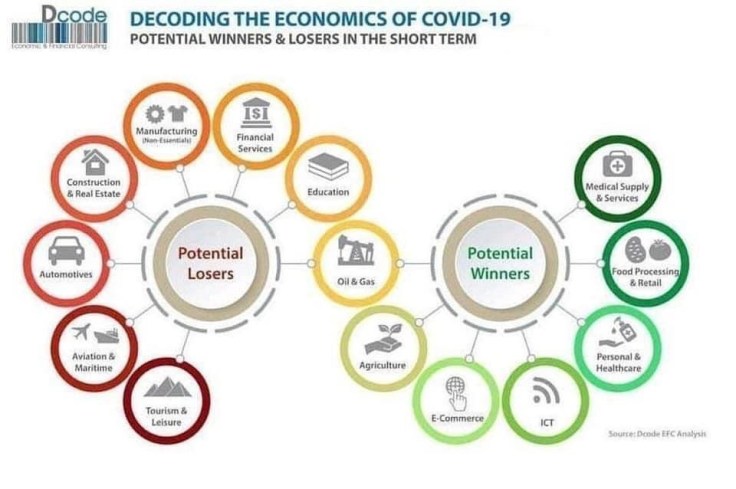 Untuk perusahaan yang berada pada industri yang menjadi potential winner, yang dilakukan adalah bagaimana dapat segera meng-capture demand yang relatif tinggi. Industry yang memenuhi basic needs bagai mendapatkan durian runtuh dalam kondisi ini. Bahkan ada beberapa perusahaan textil yang akhirnya banting stir menjadi perusahaan medical supply, yah minimal memproduksi masker. Apakah semua yang ada di Industri ini dapat menikmati? Belum tentu, tergantung apakah mereka memiliki kemampuan untuk re-skill atau up-skill secara cepat atau tidak.