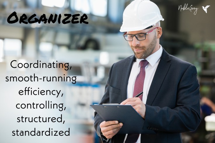 Seorang pemimpin yang bergaya organizer terlihat teratur dan well-organized. Gayanya memang akan mengendalikan segala sesuatu di dalam lingkungannya agar sesuai standard. Pemimpin seperti ini menyukai kejelasan dan keteraturan. Biasanya ukuran keberhasilan dari pemimpin seperti ini adalah efisiensi. Secara appearance, leader yang organized biasanya rapi dan teratur. Gaya ini biasanya sulit menerima perubahan dan ketidak jelasan. Dari emergenetics, biasanya leader dengan gaya ini memiliki kecendrungan pola pikir struktur proses.