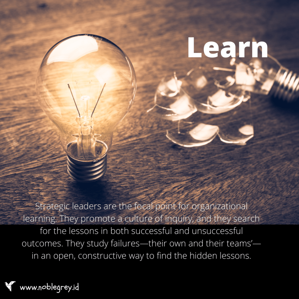 Pemimpin yang stratejik belajar dari kesalahan. Jika ada kesalahan, bukan mencari siapa yang salah, tapi ambil waktu untuk mencari apa lesson learned yang bisa diambil, kemudian move forward.