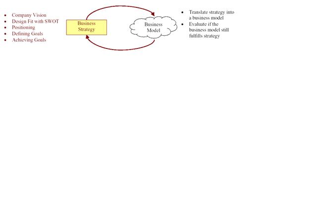 Secara sederhana, model bisnis adalah bagaimana perusahaan menjalankan bisnisnya, dimulai dari bagaimana mendapatkan pendapatan, pengaturan biaya, serta bagaimana aktivitas-aktivitas pendukungnya dapat mencapai tujuan perusahaan. Model bisnis tidak hanya sebatas bagaimana caranya mendapatkan penghasilan, melainkan juga bagaimana perusahaan menghasilkan keuntungan/profit (Affuah, 2004, p. 11). Dengan tidak hanya membatasi pada bagaimana caranya perusahaan mendapatkan penghasilan, maka sebuah bisnis model yang baik juga harus mempertimbangkan permasalahan biaya dan aktivitas-aktivitas pendukung bisnis tersebut. Model bisnis juga merupakan penerjemahan strategi ke dalam blue print bagaimana perusahaan mendapatkan profitnya (Osterwalder, 2004). Hubungan model bisnis dan strategi digambarkan dalam diagram sebagai berikut: